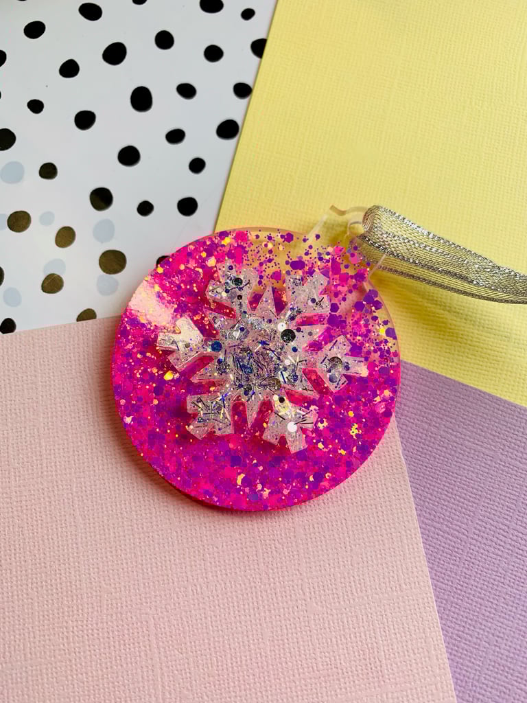 Hand mixed resin with glitter added into Christmas Bauble shape mould. This bauble are perfect to add extra fun, customised and colour for your Christmas tree or wall decor!