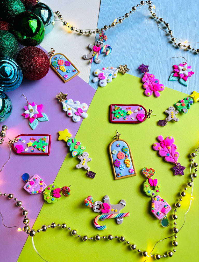 Hand mixed Polymer clay perfect for Christmas with cute stud topper.