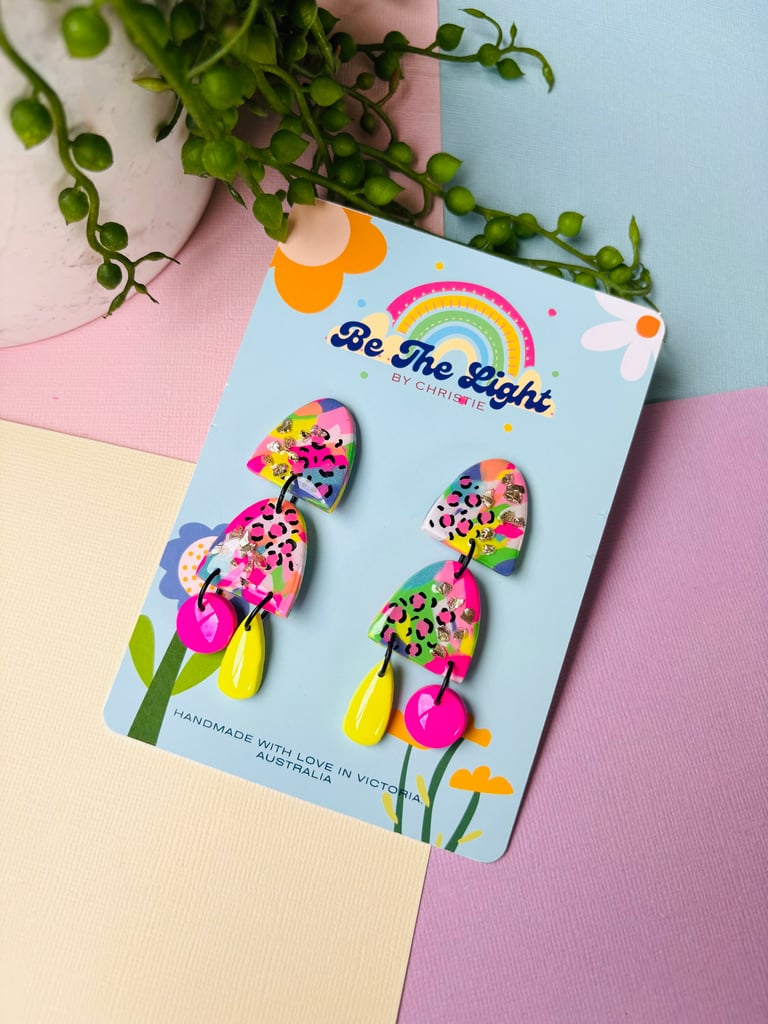 A handmade novelty earrings with polymer clay then top coated with resin to give extra glossy smooth look; such a cute, colourful and happy design.